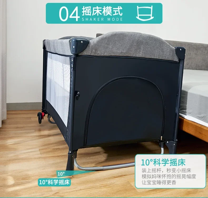 MOEYE Baby Bed Portable Baby Cribs with Diaper Table Baby Sleep Cradle Multifunctional Playpen Crib